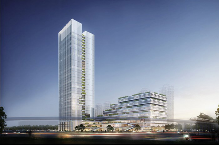 项目概况:城发高新大厦位于武广教育生态城中心,总用地面积47亩,建筑面积共 16 万平方米,由一栋 35 层的 5A 甲级写字楼和一栋 10 层星级酒店构成,项目建筑总高度为168米,是集商业配套、星级酒店和写字楼为一体,融合“行政、办公、休闲、生态、科技、智能”于一身的城市高端商务综合体。 领先国际的5A智能化办公标准的5A甲级写字楼配置,花园式办公环境,创新性的智慧新风系统,同时项目设置空中会所、双层挑高豪华大堂、大容量高速商务电梯、现代智能化地下停车库等高端商务办公国际标准配置,来这里将成为株洲教育产业创新性企业和商户办公经营的生态聚集地,成为株州教育产业发展的首选之地。