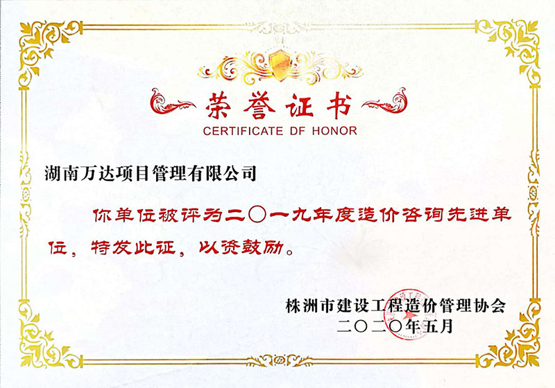 株洲市2019年度造价咨询先进单位